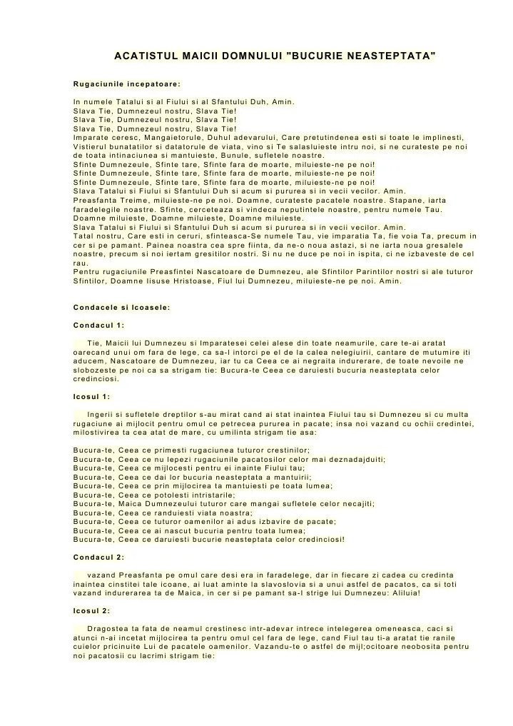 Rugăciune la icoana maicii domnului „bucurie neașteptată". Prin numele de acatist se înţelege "rugăciune … Rugăciune la icoana maicii domnului „bucurie neașteptată". „de aceea şi noi, având împrejurul nostru atâta nor de.