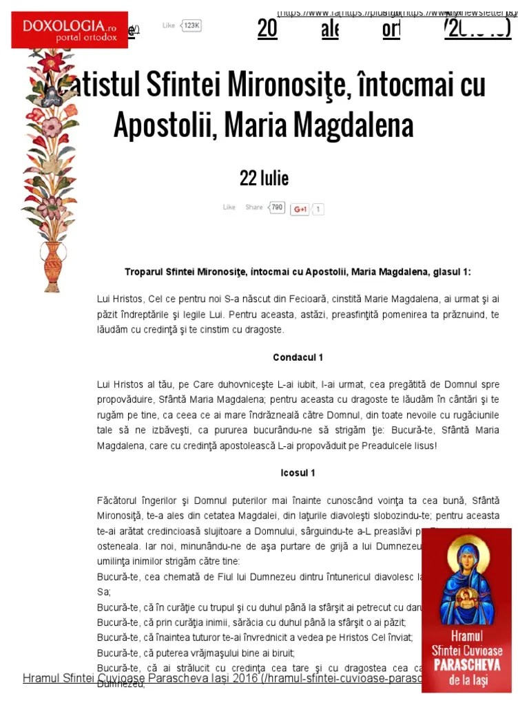 Aici Acatistul Sfintei Mironosiţe Intocmai Cu Apostolii Maria Magdalena Doxologia Pdf