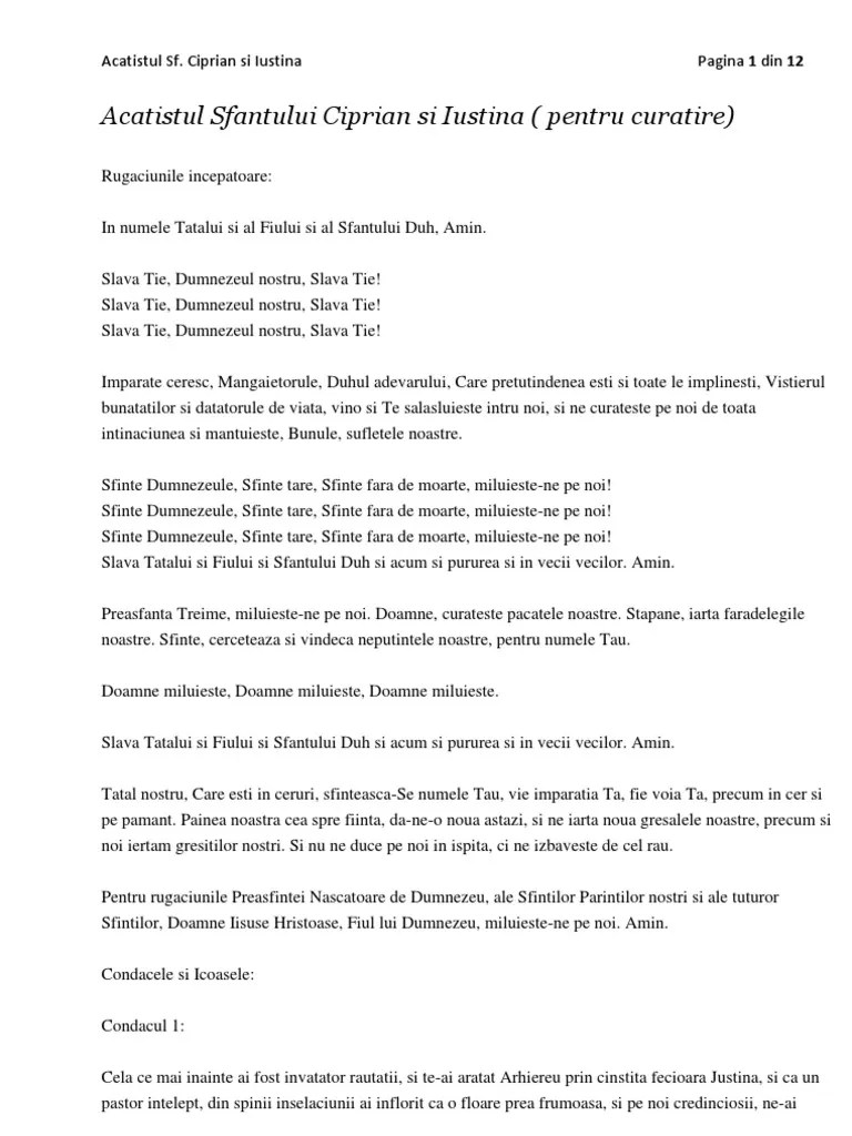 Rugăciunea sfântului mucenic ciprian, pentru izbăvirea de vrăji, blesteme și de toată lucrarea diavolească. 30.09.2018 · rugaciune catre sfantul ciprian. Whenever you're right, shut up.' ~ ogden nash 'true love cannot be found where it truly does not exist, Ș i părtaș obiceiurilor și următor scaunelor apostolilor fiind, lucrare ai aflat, de dumnezeu insuflate, spre suirea privirii la cele înalte. Că având puterea ta, pe chinuitori a învins;. Whenever you're right, shut up.' ~ ogden nash 'true love cannot be found where it truly does not exist,