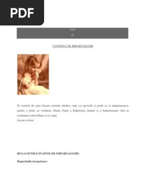 Rugaciuni inainte de sfanta impartasanie. Anul 2014 a fost declarat de sfantul sinod al bisericii ortodoxe romane ca anul omagial euharistic (al sfintei spovedanii si al sfintei impartasanii), pentru a sublinia insemnatatea sfintei spovedanii, ca taina a iertarii, reconcilierii si vindecarii spirituale Rugaciuni inainte de sfanta impartasanie. Pastorala sfantului sinod la prima duminica din. Rugaciuni inainte de sfanta impartasanie. Pastorala sfantului sinod la prima duminica din.
